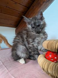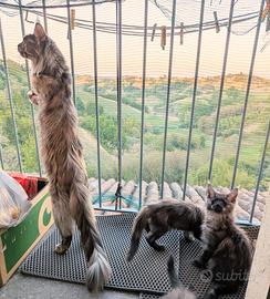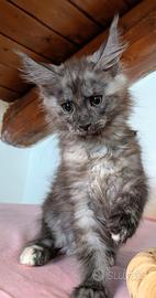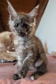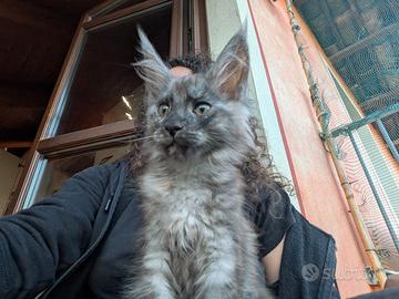 Cucciola di Maine coon in cerca di casa! Allevamento whiskers and wine Genitori testati geneticamente per malattie ereditarie, displasia, e cuore n/n La cucciola è una black tortie smoke, nata il 24/01/26, disponibile da fine aprile. Viene ceduta con primo vaccino e visita veterinaria, pedigree da compagnia e obbligo di sterilizzazione. Per qualsiasi altra info, non esitate a contattarci! (Gentilmente inviate prima un messaggio in quanto ho difficoltà a rispondere a numeri sconosciuti)