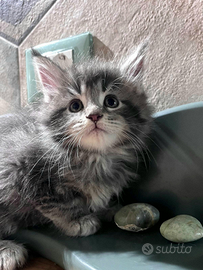 Allevamento con affisso AGI, cede dolcissima cucciola di Maine Coon blue silver tabby, linea americana.