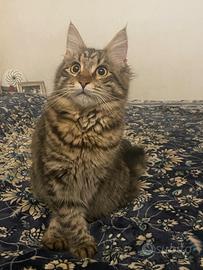 Vendo per problemi familiari cucciola di Maine coon color tabby Nata a luglio Vaccinata e sverminata Molto dolce e giocherellona Tel ore serali 3703406937