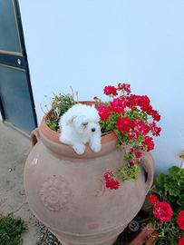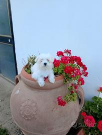 Salve come da titolo dispongo di una cucciola di maltese nata in casa da padre coreano e madre maltese normale piccola ha tre mesi e ben socializzata e abituata alla traversa verrà ceduta con due sverminazioni due vaccini e microchip genitori visibili sul posto facciamo consegne solo in zone litiformi spese apparte no affaristi le foto le ho fatte poco fa chiamate solo se siete realmente interessati no perditempo prezzo non trattabile
