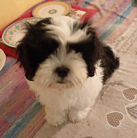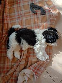 Cagnolina di taglia piccola a pelo lungo colore nero e bianco. Disponibile cucciola madre Maltese padre Shitzu età 80 giorni. Viene ceduta sverminata vaccinata con microchip e libretto veterinario. Se decidete di contattarmi è gradita una breve presentazione.