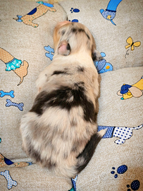 Femmina blue merle coda lunga di pastore australiano con pedigree ENCI/FCI. Sarà ceduta dal 1 febbraio, con pedigree, ciclo vaccinale completo, 3 cicli di sverminazioni , libretto sanitario e iscrizione anagrafe canina, ricevuta fiscale.