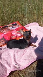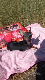 Stupenda cucciola di pincher toy la piccola è femmina ha 4 mesi viene ceduta con ciclo vaccinale completo, svermata e con microchip la cucciola è affettuosissima una gran giocherellona ama la compagnia ma allo stesso tempo è abituata a stare diverse ore a casa da sola ed è abituata a sporcare sulle traversine, ama giocare con I bambini e convive con altri piccoli animali domestici tipo il gatto. Sono visibili I genitori che pesano entrambi 2 chili per ulteriori informazioni non esitate a contattarmi