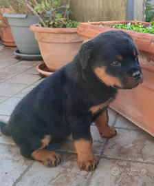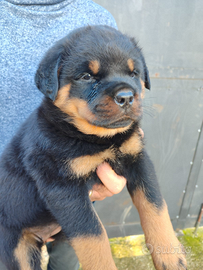 Cucciola di Rott pura nata da genitori entrambi visibili e con prestigioso pedigree; Cresciuti in contesto familiare abituati a vivere in famiglia e non in box.