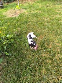 Come da titolo cedo cucciola di setter inglese di mesi 5 appena compiuti, la cucciola viene ceduta con libretto sanitario quindi ciclo vaccinale completo e pedigree ENCI, importante genealogia radentis di padre e crocedomini di madre. La cucciola già ferma lo stoppino e riporta in modo leggero.