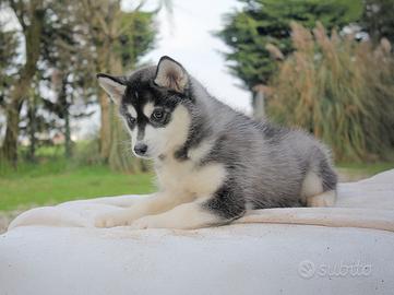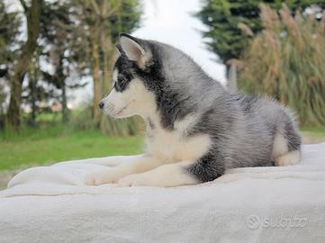 Mi presento, sono Mindy (nome indicativo) e sono una femminuccia di Siberian Husky dai colori bianco e nero. Ho 2 mesi di età e sono prontissima per entrare nelle vostre case a scodinzolare.