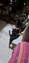 Cucciola di 3 mesi incrocio pinscher/chihuahua, è una piccola taglia.. Ha effettuato 2 sverminazioni, ha 3 vaccini, ha il microchip..ha libretto sanitario e certificato di ottima salute..no perditempo.. si richiede un rimborso spese