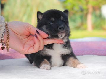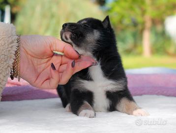 Thea (nome indicativo) è questa splendida cucciola femmina di Shiba Inu dal manto nero focato di 2 mesi di età. Con lo sguardo attento e il carattere vivace, è affettuosa e molto curiosa. Dolce ma determinata, è la compagna ideale per chi desidera una presenza leale, indipendente e piena di fascino.