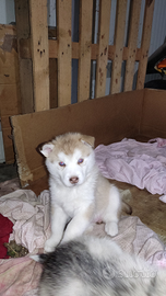 Ultima cucciola marroncina con okki azzurri, di incrocio tra husky siberiano e husky malamut verranno ceduti intorno al 20 di gennaio con doppia dose di sverminazione doppia vaccinazione e iscrizione canina. I genitori sono di mia proprietà per tanto visibili. per qualsiasi domanda non esitate a chiedere NO PERDITEMPO e affaristi
