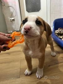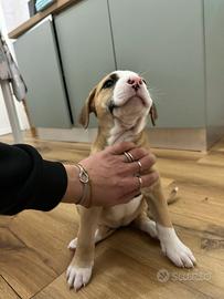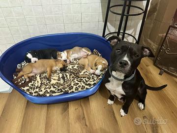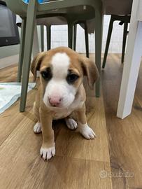 Cucciola di 50 giorni, nata il 21 ottobre, arriverà a pesare circa 20 - 25kg, incrocio fra mamma AMSTAFF e papà METICCIO , ultima della cucciolata che ancora non ha trovato la sua famiglia, erano 8, primo vermifugo fatto il 30 novembre, vaccini e microchip da effettuare dal proprio veterinario, non sono in vendita ma prendo solo un rimborso spese di 40 € che non sono un acconto ma verranno dati solo quando si verrà a prendere la cucciola, siccome non era una gravidanza prevista e non potevo affrontare questa spesa enorme per me e vorrei solo recuperare qualcosa, grazie in anticipo, per altre informazioni contattami in privato, io sono di quarto, vicino Pozzuoli, no perditempo, la cucciola non è di taglia piccola, ripeto, peserà sui 20- 25 kg, taglia media, solo chi è davvero interessato a tenerla in casa ed essere parte della famiglia. Contattare solo se siete sicuri di fare questa scelta, aspettiamo il nuovo papà o mamma, grazie mille