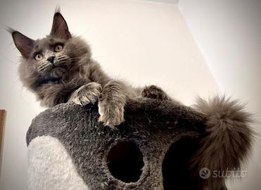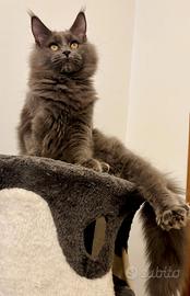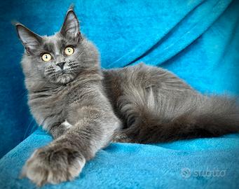 Bellissima gattina Maine Coon Blue solido di 5 mesi.