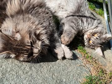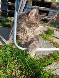 Meravigliosa cucciola razza Maine coon dolce, affettuosa e giocherellona cerca la sua famiglia.abituata a lettiera e tira graffi ed al contatto umano sia in appartamento che in giardino.