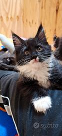 Siamo un allevamento di gatti pura razza Maine Coon certificato con affisso. È disponibile l'ULTIMA cucciola Femmina nata il 07/02/26. La cucciola é disponibile a raggiungere la nuova Famiglia a Maggio. È ben socializzata in modo da esaltare il suo carattere dolce e socievole, sa usare in autonomia sia la lettiera che il tiragraffi e verrà ceduta con: 1- Pedigree da compagnia 2- Doppio vaccino 3- Sverminazione preventiva 4- Microchip 5- Passaggio di proprietà 6- Libretto sanitario 7- Visita veterinaria con certificato di buona salute 8- Test feci di controllo (Giardia, Parvovirus e parassiti vari) 9- Contratto di cessione 10- Garanzia post cessione 11- Copia test genetici dei genitori (HCM, PKD, PKDEF, ATROFIA SPINALE MUSCOLARE E ATROFIA RETINICA GLICOGENOSI). ESITO NEGATIVO 12- Copia esami FIV E FELV dei genitori ESITO NEGATIVO