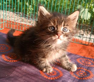 Allevamento premiato e con affisso rende disponibile splendida cucciola Maine Coon di rara colorazione Torbie (marrone tigrata con macchioline rosse).
