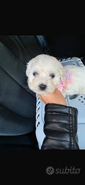 Allevamento amatoriale in casa dispone pronti da SUBITO due bellissimi e piccoli cuccioli Maltipo toy( razza che nasce tra maltese e barboncino ) femmina chiara panna e maschio panna di due mesi abituati in casa e alla traversina per i bisogni ,molto tranquilli e dolci ,si cedono con regolare vaccino sverminazioni libretto microcip certificato buona salute .prezzo 850 femmina e 800 maschio non tratt .foto recenti e reali ! No perditempo contattare solo se interessati al 3393804807 .ci troviamo in Umbria ma possiamo venire leggermente incontro per la consegna