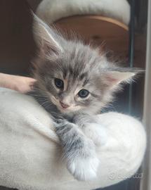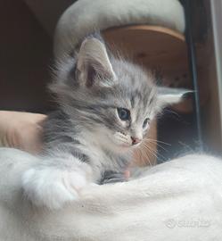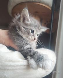 Cucciola Norvegese delle Foreste blu - eccellenza selezionata Blue Lynx L'allevamento Blue Lynx, riconosciuto ENFI, è lieto di presentare una splendida cucciola di Norvegese delle Foreste, mantello blu blotched e bianco, nata il 28 febbraio. La cucciola proviene da linee di sangue accuratamente selezionate per salute, tipicità e temperamento, tra i migliori allevamenti scandinavi ed europei. Entrambi i genitori sono testati e negativi per HCM, GSD IV e PKDef, a garanzia di qualità e serenità futura. La cucciola cresce in ambiente familiare, seguita con attenzione nella fase di sviluppo, perfettamente socializzata, abituata alla lettiera e al tiragraffi, con carattere dolce, equilibrato e tipico della razza. La cucciola sarà affidata con: Pedigree ufficiale ENFI Libretto sanitario completo Due vaccinazioni trivalenti Due esami coprologici per parassiti e giardia negativi Certificazione veterinaria di ottima salute Microchip termico Contratto di cessione e kit cucciolo premium Disponibile dal 25 maggio, esclusivamente dopo il corretto percorso di crescita. Selezioniamo con attenzione le future famiglie, privilegiando contesti che garantiscano amore, cura e qualità di vita. Offriamo supporto costante anche dopo l'inserimento.