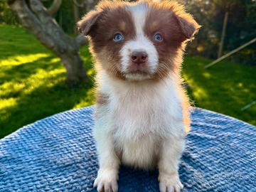 Disponibile dal 23 dicembre splendida cucciola di Australian Shepherd red Tricolor con occhi azzurri e coda lunga. Genitori testati ed esenti da patologie genetiche di razza e con dna depositato.