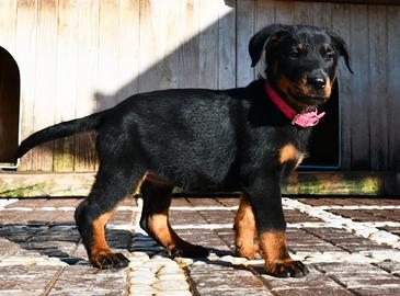 Cucciola di cane da PASTORE di BEAUCE (BEAUCERON, antica razza francese) femmina nero focata disponibile nata il 23 Ottobre 2025, carattere e morfologia eccellenti, nessun difetto.