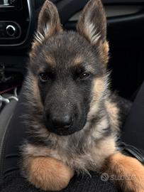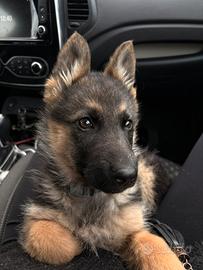 Vendo cucciola di pastore tedesco nata il 14/10/2025 . È già abituata alla traversina è tranquilla è abituata alla macchina vendo con accessori come cuccia ciotole con appoggio giochini guinzaglio e pettorina e le crocchette .