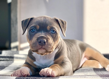Disponibile splendida cucciola femmina di Pitbull tricolor, figlia di campioni, con ottima genealogia e caratteristiche morfologiche di alto livello.
