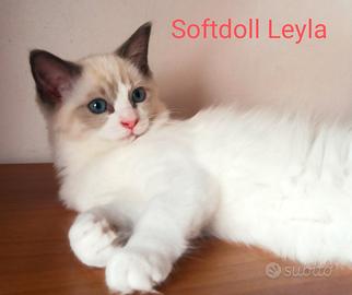 Disponibile subito presso allevamento SOFTDOLL di Lugo di Ravenna cucciola Ragdoll bellissima e dolcissima.. ottimo carattere adatta anche a bimbi... predisposta per la PET therapy. Verrà ceduta con tutti i suoi documenti in regola, vale a dire passaggio di proprietà e contratto di cessione cucciolo con obbligo di sterilizzazione a circa 1 anno di età, pedigree Enfi associazione riconosciuta dallo stato italiano, libretto sanitario dove troverai annotate le due vaccinazioni trivalenti effettuate ed i due trattamenti vermifughi eseguiti in più il test della giardia eseguito sulle feci con esito negativo. Graditissimi OMAGGI 1 trasportino grande con all'interno un cuscino una copertina ricamata più vari giochi più 1 kit della Royal Canin. Per maggiori informazioni chiamare Mary al 320 62 51 841.