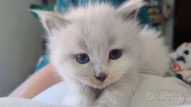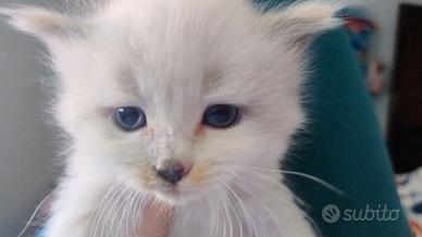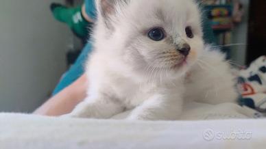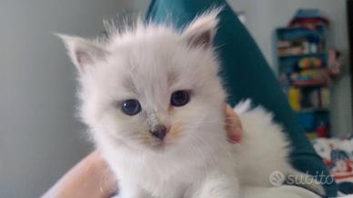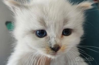 Marlene,cucciola Ragdoll senza pedigree femmina nata il 10/03 in casa dai nostri gatti,che vivono con la nostra famiglia e sono già genitori di altre cucciolate con gattini sani e apprezzatissimi dalle famiglie che li hanno adottati.Sono stati presi da famiglie con bambini,oppure con altri cani e gatti in casa,regalati a persone anziane,proprio per il loro carattere dolce ed equilibrato.Verra' ceduta a partire dai due mesi compiuti,con libretto veterinario,visita vaccino e sverminazione.Per info e video contattatemi