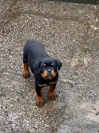 Disponibile ultima meravigliosa femmina di Rottweiler di 3 mesi e mezzo, nata il 20 Ottobre 2025 completatamete vaccinata e sverminata, con microchip e Pedigree Enci. Genitori con DNA depositato, testati per patologie genetiche e lastrati per displasia dell'anca e del gomito. Il papà proviene da un noto allevamento qui a Roma, la mamma è di linea serba. Cucciola estremamente tipica e con un carattere molto affettuoso e sicuro di sé. Abituata al contatto umano e alla convivenza con altri cani anche di piccola taglia. Per ulteriori info, foto/video o per venirla a conoscere di persona non esitate a contattarmi. La richiesta per lei è di 500€. Solo realmente interessati, no perditempo.