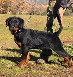 Bellissima cucciola di rottweiler di circa 100 gg , cucciola molto serena tranquilla e molto affettuosa. Figlia di genitori selezionati privi da malattie ereditarie . Cucciola particolarmente adatta a chi voglia fare sport .