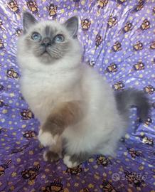 Nell'allevamento Bastet Miw è attualmente disponibile una splendida cucciola Sacro di Birmania, nella colorazione blu point, disponibile dai primi di aprile. Verrà ceduta munita di libretto sanitario, doppia vaccinazione trivalente, certificato di buona salute, microchip, pedigree, passaggio di proprietà e abituato all'uso della lettiera e del tiragraffi. Bastet Miw è un allevamento riconosciuto ANFI e specializzato nella razza dei gatti Sacro di Birmania. Ogni cucciolo viene allevato in un ambiente amorevole e stimolante, e preparato per essere un compagno ideale per la sua futura famiglia. Se stai pensando di accogliere un Sacro di Birmania nella tua vita, Bastet Miw potrebbe essere l'allevamento giusto per iniziare la tua avventura felina. Per maggiori informazioni, contattare il numero 347/6720363, ma solo se realmente interessati, grazie. Melinda