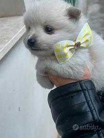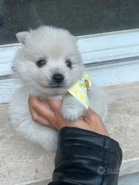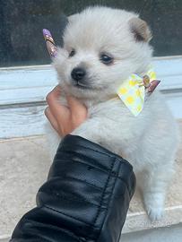 da allevamento amatoriale Prenotabile questo meraviglioso e piccolo cucciolo maschio Spitz pomerania bianco taglia piccola(2.8kg) max adulta,di quasi 2 mesi pronta tra 20gg. Abituato alla traversina ,cresciuto in casa e ceduto con vaccino sverminazioni libretto sanitario microcip certificato buona salute. Foto reali. Prezzo 900 non tratt. Contattare solo se seriamente interessati 3393804807