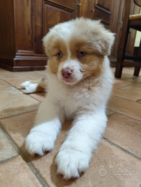 La nostra cucciola Red merle nata 7 /12/2025 cerca ?? Cucciola e vaccinata ,sverminata,con il chip e pedegree!