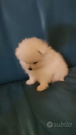 Ultima cucciola bianca disponibile di volpino di Pomerania toy. La cucciola ha tre mesi è mezzo, è già vaccinata e sverminata , insieme alla cucciola e al libretto delle vaccinazioni si dà anche un piccolo kit puppy per i primi giorni. Inoltre sa usare già usare la traversina e dare la zampetta.