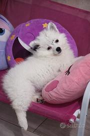 Meravigliosa cucciola di volpino spitz, quasi 4 mesi, dolcissima e molto giocherellona.. abituata a stare a stretto contatto con bambini piccoli!