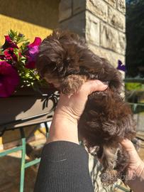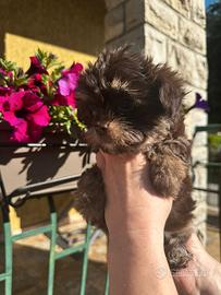 Bellissima femmina di Yorkshire mini colore cioccolato disponibile . Lei ha 2 mesi, con il primo vaccino, il microchip, libretto sanitario. Fatto sverminazione. Genitori nostri . Possiamo mostrare tramite videochiamata su Whatsapp o potete venire e vedere direttamente. Possiamo portare in qualsiasi città . Prezzo 1200 euro .