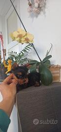 Disponibile una femminuccia Yorkshire terrier Toy, molto bella, piccola, compatta e con il nasino cortissimo. Genitori visibili. sverminata, vaccinata, con libretto sanitario, microchip e pedigree. Disponibile dopo il 15 aprile.
