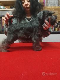 Cucciola di 3 mesi di zwergschnauzer pepe sale alta genealogia di sangue, viene ceduta con vaccino microchip ciclo di sverminazioni certificato di buona salute, pedigree ENCI già richiesto. Alto livello no perditempo o affaristi o intermediari . Chiamare solo se interessati, solo contatti telefonici grazie