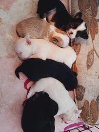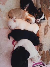 Abbiamo 4 maschietti, 2 color Panna e 2 neri con macchiette bianche, e 2 femminucce, 1 nera con macchie bianche e 1 marrone con macchie bianche.