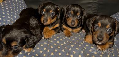 Cuccioli nati a Genova il 17 marzo 2026. 3 femmine e un maschietto disponibili. Madre bassotto puro, mentre il padre non è di razza, è un meticcio (simil pincher/bassotto) di taglia molto piccola. ( entrambi i genitori sono visibili nell annuncio). Ci teniamo al loro benessere dunque cerchiamo qualcuno che li ami per tutta la loro vita, con tempo per loro e responsabilità. Sono cani molto attivi e con voglia di fare! Per maggiori info o dubbi contattare con un messaggio chiaro e abbastanza dettagliato. Ceduti con microchip e primo vaccino.