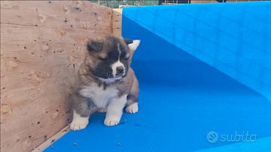 Cucciolo di Akita Americano nati il 17 febbraio con pedigree ENCI. Genitori esenti da displasia. Sarà ceduti dopo il 60esimo giorno di vita con profilassi veterinaria È gradita visita in allevamento per visionare senza impegno cuccioli e i relativi genitori. Non rispondo a mail o messaggi che chiedono solo il prezzo, ma le informazioni saranno date esclusivamente contattando il numero 346 215 7128 Possibilità di consegna in tutta Italia
