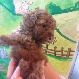 Due bellissime femminucce di barboncino toy red nate e cresciute in casa da allevamento amatoriale. Genitori entrambi visibili perché miei cani. Verranno ceduti dopo il compimento dei 60 giorni con sverminazioni effettuate microchip inserito con iscrizione anagrafe canina e libretto sanitario rilasciato dal veterinario che li ha in cura. Chiamate per qualsiasi curiosità o per appuntamento per venire a vederle.