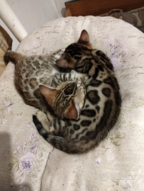 Disponibili 2 Cucciole razza Bengala nate in data 29.12.2025.Crescono in casa e sono socievoli.Vengono cedute con pedegree Afsi anche for breading, microchippati, doppia sverminazione, doppia vaccinazione, nutriti con cibo di eccellente qualità, sanissimi. Genitori entrambi di mia proprietà e visibili. Assistenza e consulenza post vendita. kit cucciolo compreso . ?1200 . Test genetici visibili