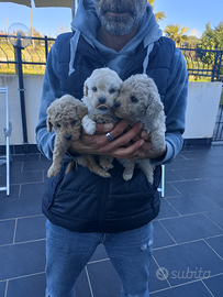 Salve come da titolo dispongo di tre cucciole di barboncino femmine nate da padre Toy e madre nana ben socializzati nate e cresciute in casa sono nate il 23 gennaio saranno pronte per il 23 marzo e verranno consegnati con due sverminazioni un vaccino e microchip genitori visibili sul posto sono abituate alla traversa no spediamo no affaristi