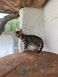 Disponibili cucciole di gatto del Bengala, femmine, brown spotted BEN n24. Le gattine, figlie di genitori selezionati e testati, tre mesi d'età, verranno cedute con prime vaccinazioni, trattamento per endo ed ectoparassiti, certificato veterinario di buona salute e di pedigree da riproduzione o da compagnia, da cui dipende anche il prezzo. Preferibile contatto telefonico per maggiori informazioni.
