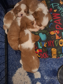 Disponibili ultime due cucciole di Cavalier king charles spaniel blenheim con pedigree Enci e genitori testati ed esenti dalle patologie tipiche della razza (oculopatie, cardiopatie, lussazione della rotula) e test genetici (consegno copia certificazioni). Le cucciole sono disponibili da metà febbraio e saranno consegnate con vaccino, doppia sverminazione, libretto sanitario, kit puppy, iscrizione ad anagrafe canina e passaggio di proprietà. Le cucciole hanno un carattere molto dolce ed equilibrato e sono abituate all'ambiente domestico, a bambini e altri animali. Per conoscere genitori e cucciole, contattatemi al numero 320 3157031