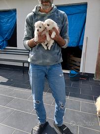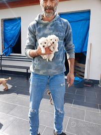Salve come da titolo dispongo di cucciole di maltese nate da padre linea coreana da 1,800kg e da madre 2,500kg sono disponibile solo femmine dal manto bianco e naso nero abituate alla traversa nate è crescite in famiglia verranno ceduti con due sverminazioni e un vaccino e microchip genitori visibili sul posto