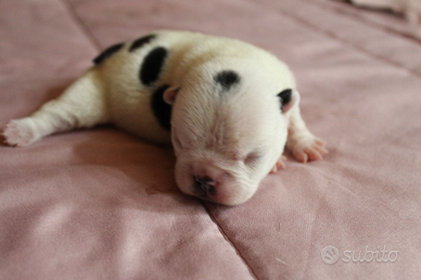 Siamo lieti di annunciare la nascita di una splendida cucciolata di Bulldog Francese, composta da 4 femmine tutte bianche e nere una sola bianca già prenotabili.