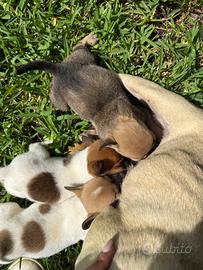 Cucciole cercano casa. Sono 3 sorelline, non sono originali, la mamma è un bulldog francese originale( possibile visionare sia in foto che dal vivo) mentre in padre no. Sono le ultime rimaste della cucciolata, bellissime e giocarellone. Ho urgenza a toglierle perché avendo altri cani non riesco più a gestirle. Sono svezzate e sverminate.