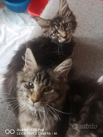 2 sorelline main coon.. Nate il 24/06 /25 Linea alta genealogia Pedigree Afsi, vaccini e microchip... Abituate a simili e cani Torino centro