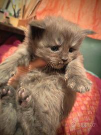 Cucciole simpaticissime di Maine Coon con pedigree, colore blu tortiera smoke, Mamma tricolore,papa' black smoke.Provvisti di certificato genealogico saranno pronti per la nuova famiglia nella prima parte del mese di Giugno. Dolcissime e coccolone perche cresciute in casa con amore (no gabbie!) a contatto con persone,bambini,cagnolini e abituati a bagnetto e rumori domestici. I genitori hanno tutti i test genetici a posto e gli ecocardio perfetti (l'ultimo recente).Tutti i test parassitologici per la salute vengono effettuati per garantire la salute del fatto e la vostra tranquillità. possibilita di pedigree aperto ad allevatori e persone competenti