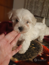 In cerca di una nuova famiglia, due bellissime cucciole di maltese, femminucce, di 9 settimane. Nate e cresciute in famiglia, molto vivaci,in cerca sempre di coccole. Abbastanza brave con la traversina. Vengono cedute svezzate, sverminate e con il primo vaccino. Genitori visibili insieme alle piccole.